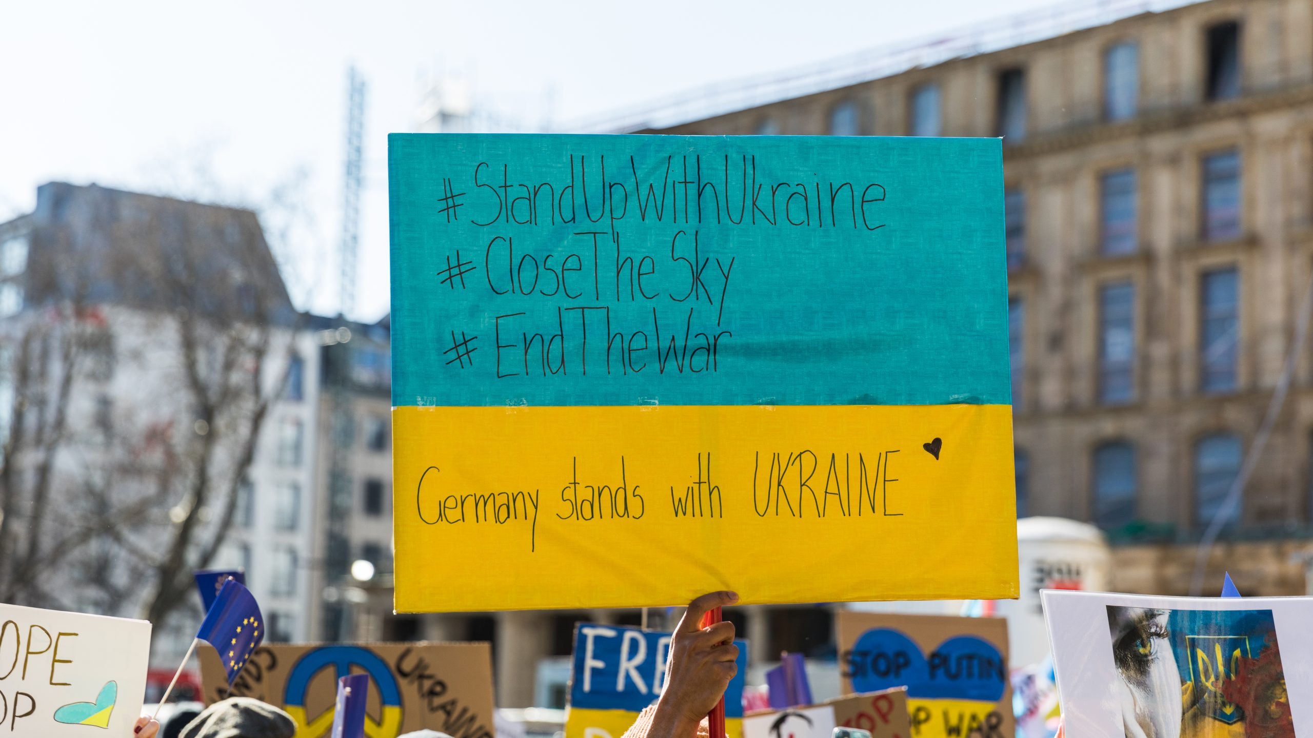 (Photo: Demonstration „Stopp russische Aggression – Frieden in Europa“, Köln, Roncalliplatz © Raimond Spekking)